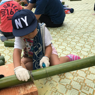 かなり太い竹でしたがどの子も上手に竹を切ることができます。なぜなら今のノコギリはすぐれもので「竹用ノコギリ」の切れ味は抜群だからです。